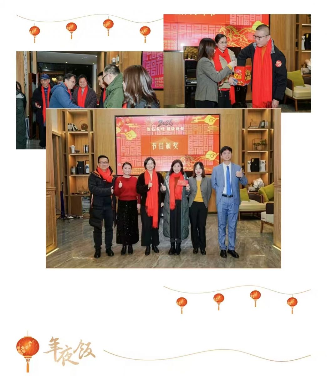 宴席間,伙伴們推杯換盞、暢聊心聲,分享著一年來的收獲與感悟,暢談著對未來的憧憬與期待。晚宴尾聲,公司高層領(lǐng)導帶領(lǐng)全場人員起立合唱歌曲串燒,歌聲嘹亮、氣氛熱烈。伴隨著《Happy New Year》的溫情旋律,年會圓滿落幕。